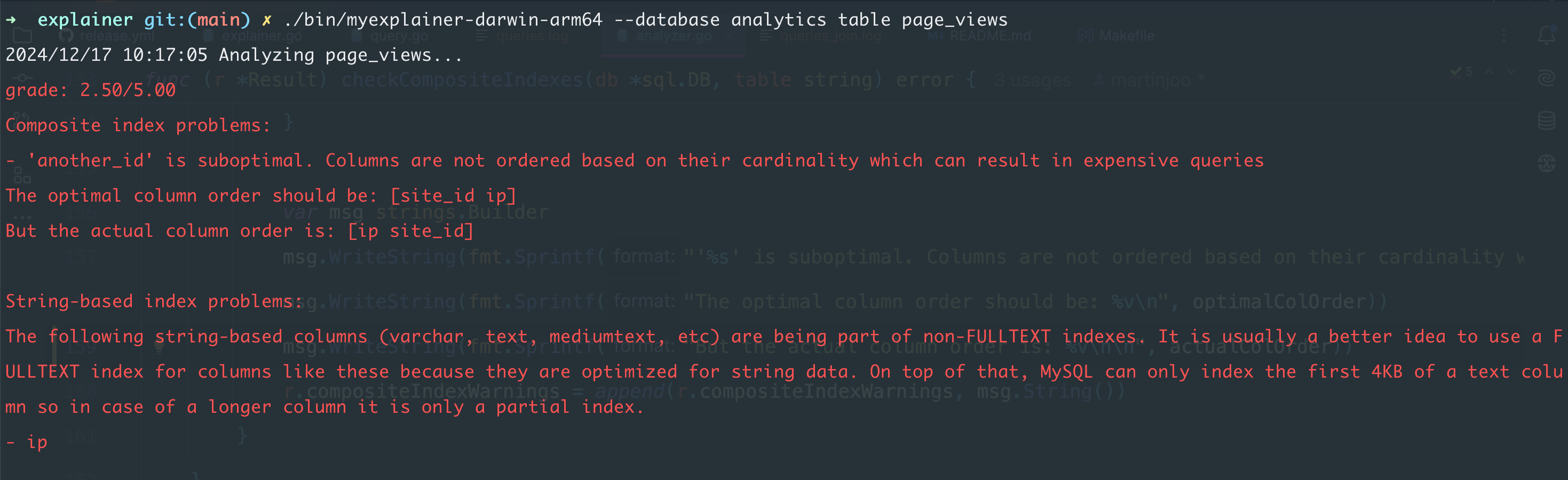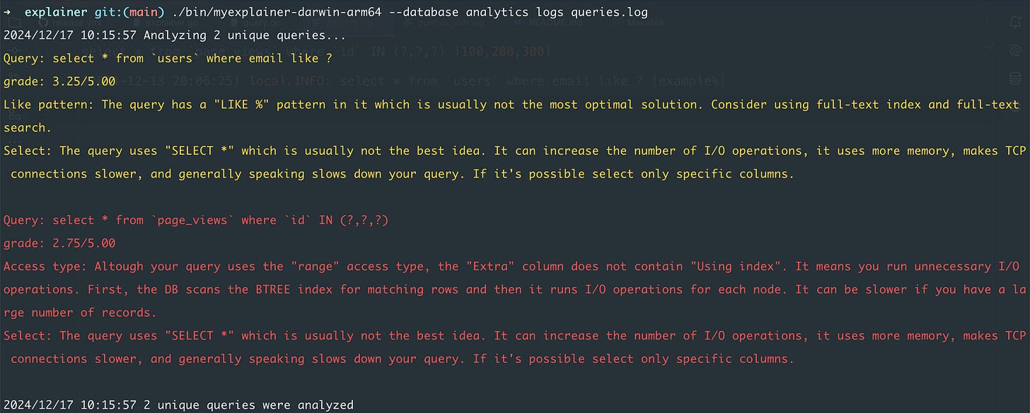 The truth is, I’m building a small open-source app called myexplainer that can detect performance problems in your queries and tables. So you can not just read about them, but check them pretty easily by running one command: