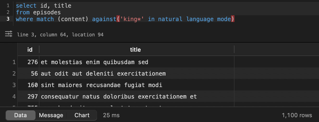 Did you know that a mediumtext column can hold 16MB of data? It’s 16,777,216 bytes. But we can only index 768 of those.