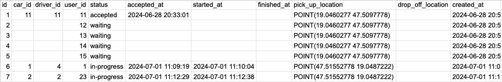 These states are important. The transitions between are also very important. For example, a waiting ride cannot be marked as finished. If something like that happens it messes up the driver pools.
